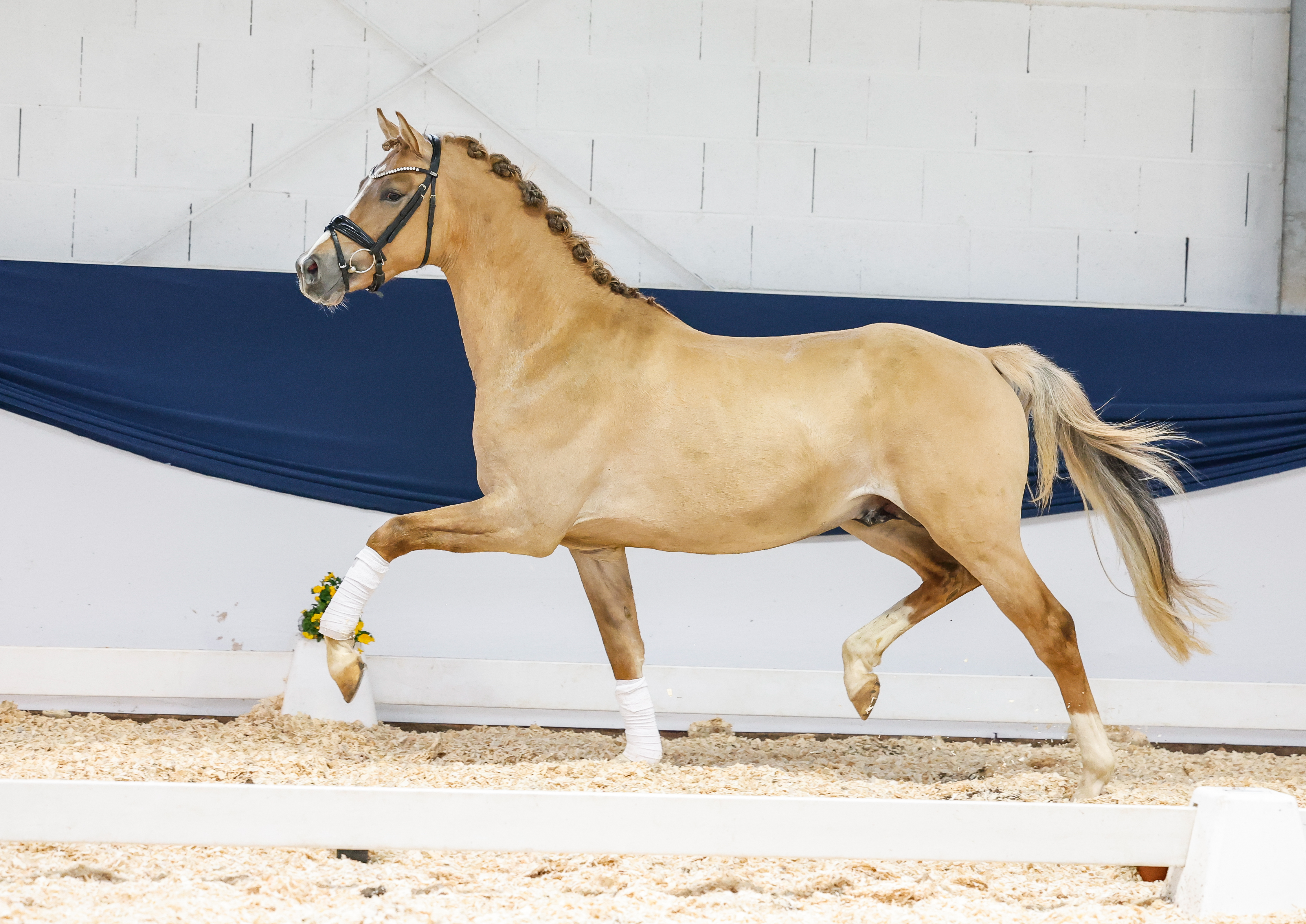 Für 12.000,00€ wechselt die Falbstute Gryffindors Delacour den Besitz. Die Weser-Ems Stute, gezogen von Christian Jaspers aus Westerstede, stammt ab von Cayuga San - Halifax und zukünftig wird sie in den Niederlanden beheimatet sein. Sie weckte großes Kundeninteresse aufgrund ihrer Bewegungsqualitäten und ihrer typvollen Aufmachung.