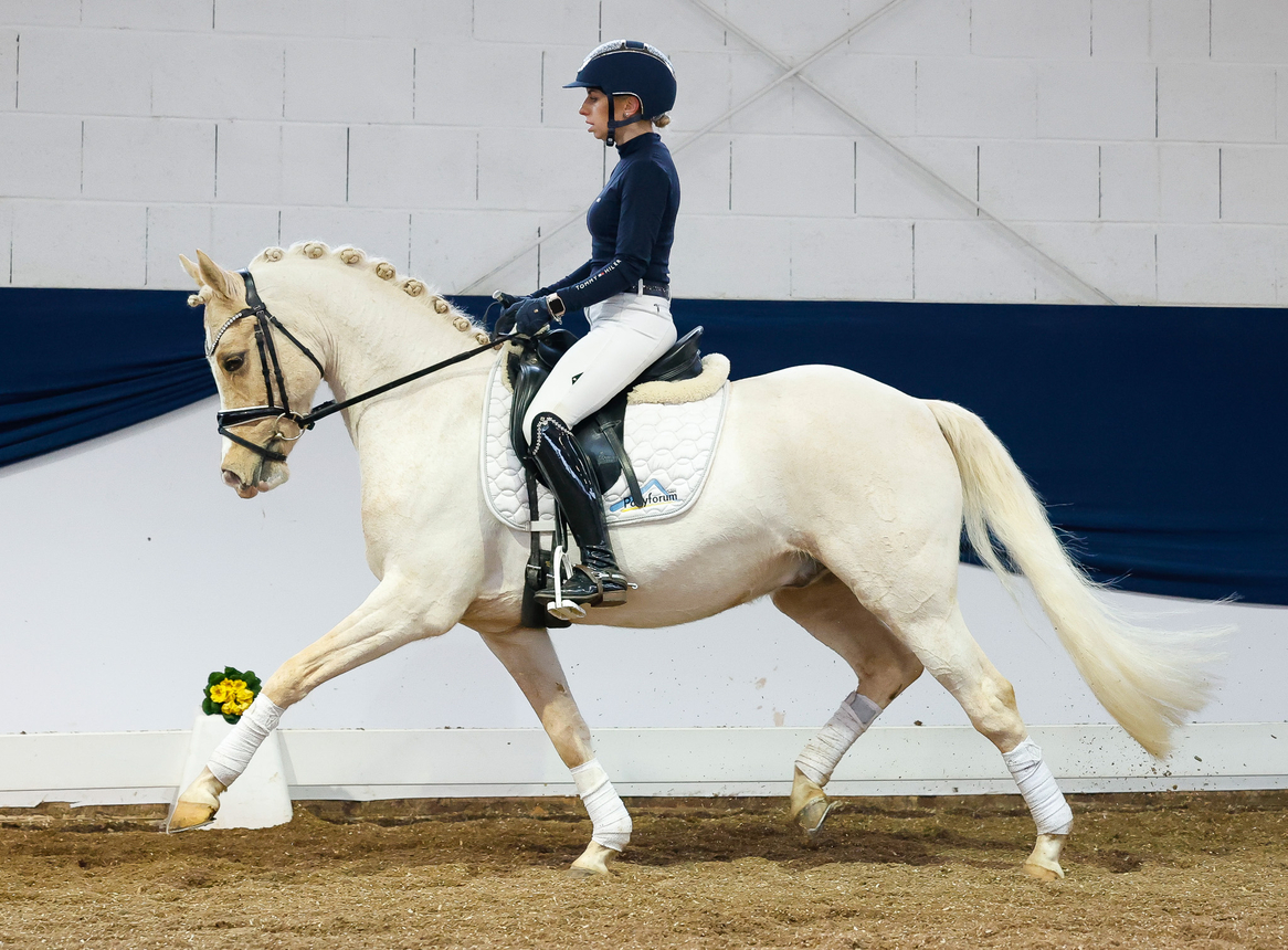 Ebenfalls 19.000,00€ erzielte der fünfjährige Reitponyhengst „Wasteins Der Kleine Lord“ von Darubi Gold – Classic Dancer I. Der bewegungsstarke Fuchs, gezogen von Alexandra Dillenberger aus Großmaischaid, ist bereits in Aufbauprüfungen erfolgreich und empfahl sich als hervorragendes zukünftiges Championatspony! Er wird zukünftig in der Schweiz beheimatet sein. Der XL Palominowallach „Golden Champion“ von D-Gold AT NRW – Top Champy aus der Zucht von Bernhard Deitert aus Schöppingen wurde für 15.000,00€ verkauft. Eine junge Ausbilderin aus Nordrhein-Westfalen sicherte sich den viel versprechenden Palominowallach und möchte ihn als Dressurpony ausbilden.