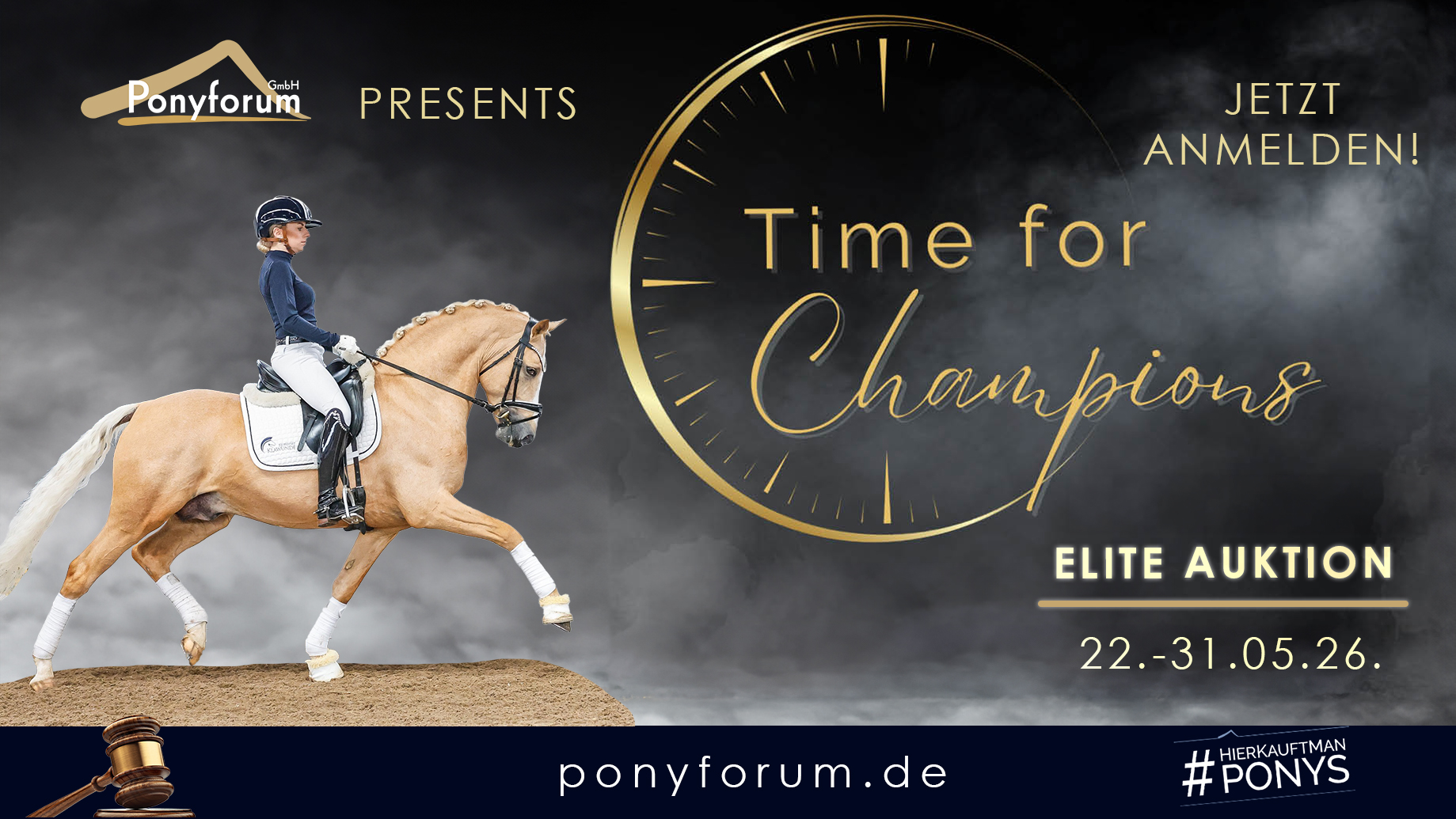Marsberg, 10.04.2026 – Nach der Rekord-Premiere des Auktionsformats „Time for Champions“, das mit einer sensationellen Verkaufsquote von 100 % und einem Durchschnittspreis von knapp 50.000,00 Euro neue Maßstäbe im Pony-Markt setzte, kündigt die Ponyforum GmbH die Fortsetzung an. Für die kommende Elite-Auktion vom 22.-31. Mai werden ab sofort hochkarätige Dressurponys im Alter von 4 – 10 Jahren gesucht.